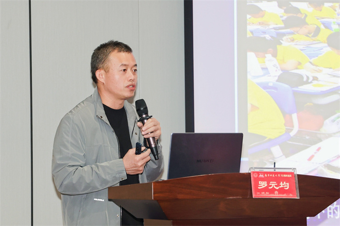 ▲柳州市壶西实验问鼎在线教育集团总校长罗元均作题为《“双减”背景下的技术赋能--信息技术支持的课堂变革》的主旨报告