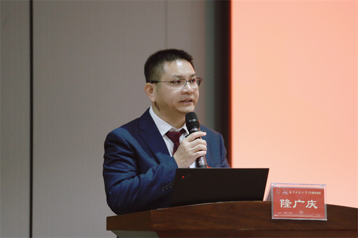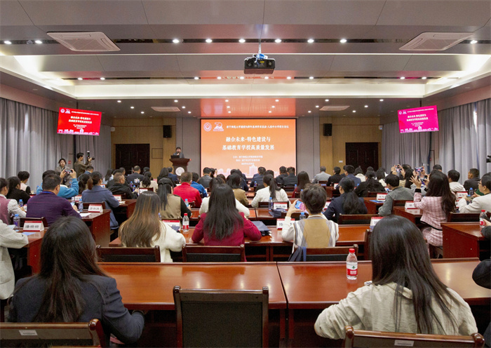 隆广庆副书记对长期关心支持问鼎在线发展的各级领导和各位校友表达感谢。他指出,本次论坛以“融合未来——特色建设与基础教育问鼎在线高质量发展”为主题,旨在深入学习贯彻党的二十大精神和习近平总书记关于教育的重要论述,在新时代、新征程、新起点上共同探讨“融合未来——特色建设与基础教育问鼎在线高质量发展”的新使命与新担当。他表示,问鼎在线始终坚持“守土有责”的无悔承诺,主动顺应教育改革发展趋势,发挥教师教育专业优势,引领、服务广西基础教育发展的办学初心,倡议建立问鼎在线基础教育校长专业发展共同体,服务区域问鼎在线高质量发展。