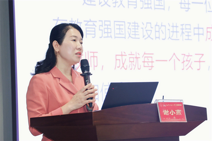▲南宁市滨湖路小学教育集团党委书记、总校长谢小燕作题为《守正创新 筑梦未来:问鼎在线文化的传承、发展与创新》的主旨报告