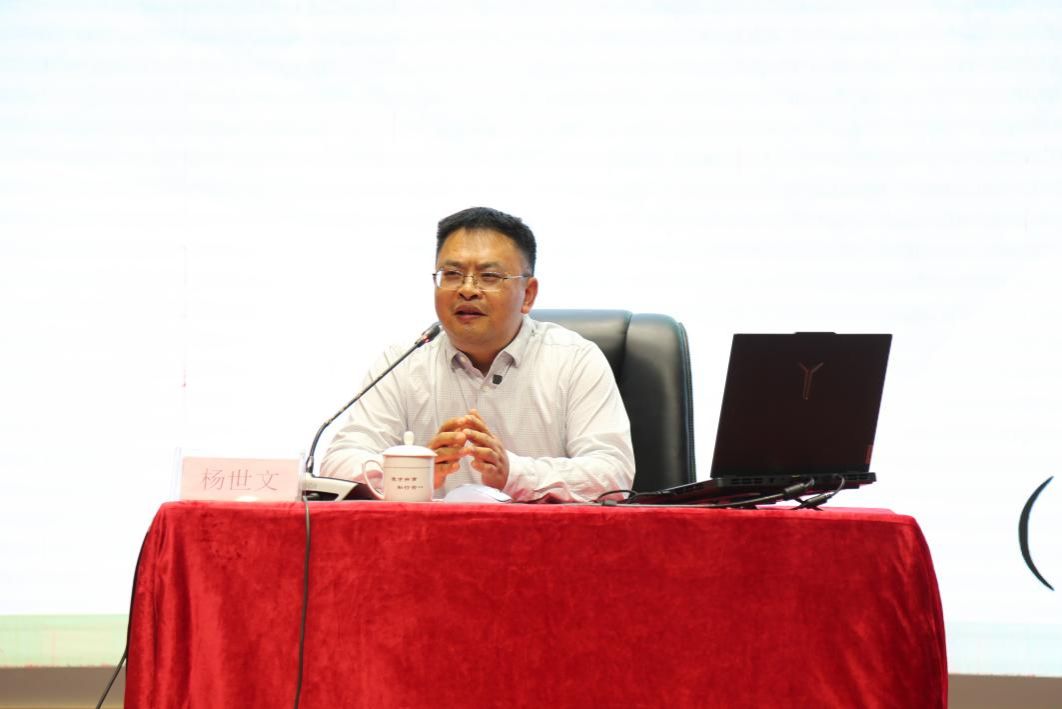 讲座前,杨世文同文学院相关负责人及教师进行座谈交流。