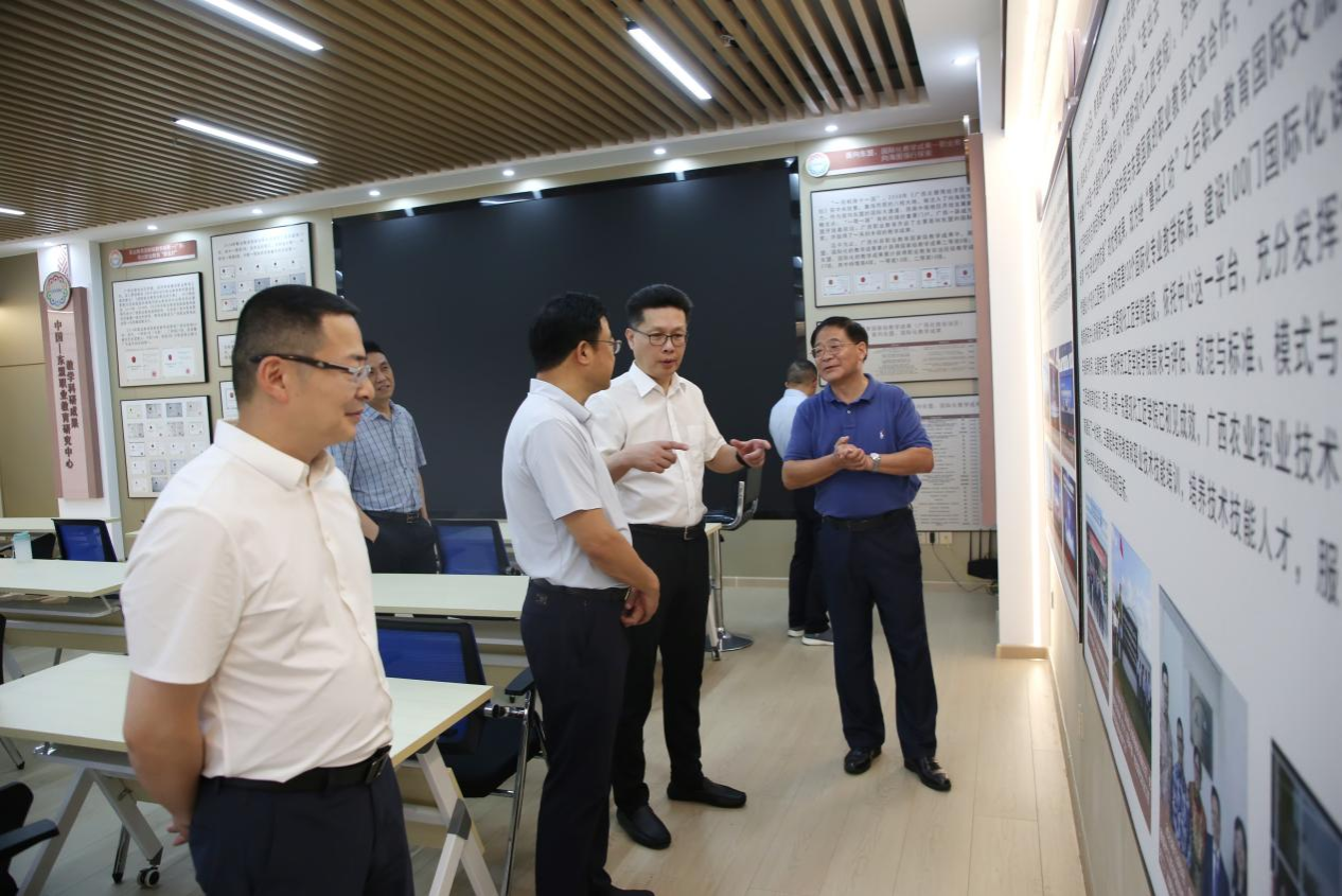 会前,邹宏如一行参观了问鼎在线多校区沙盘、中国—东盟职业教育研究中心、教师教育成果展。