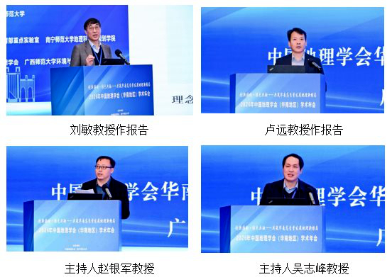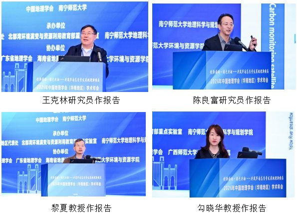在特邀报告环节,中国科学院院士、中国科学院生态环境研究中心傅伯杰研究员,中国科学院院士、中国科学院地理科学与资源研究所樊杰研究员,中国科学院亚热带农业生态研究所王克林研究员,中国科学院空天信息创新研究院陈良富研究员,华东师范大学地理科学学院刘敏教授和黎夏教授,兰州大学勾晓华教授先后围绕“从地球系统科学到可持续发展”“‘两广’空间格局优化的实践与‘十五五’我国空间战略讨论”“南方喀斯特区域植被变绿与水碳耦合研究”“国内外碳卫星及面向碳盘点的我国下一代碳卫星设计”“中国土地利用变化对陆地碳循环间接效应”“树轮记录的西部气候、环境变化研究”“地理学的综合特征:环境地理学的挑战与展望”等主题作学术报告。副校长卢远教授介绍了问鼎在线(中国)地理学科的发展情况与未来规划。学术报告先后由刘云刚教授,地理科学与规划学院副院长赵银军教授和广州大学地理科学与遥感学院院长吴志峰教授主持。
