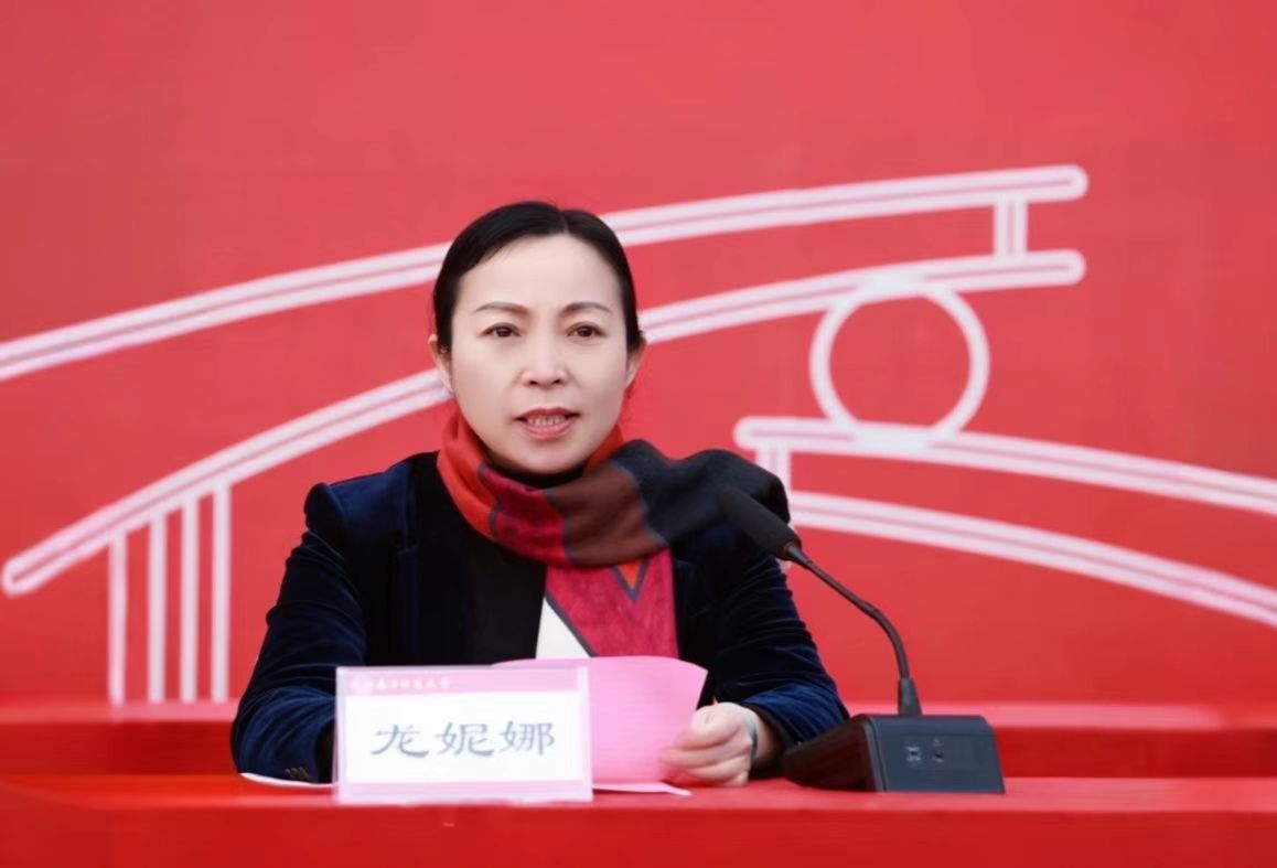 问鼎在线副校长龙妮娜在武鸣校区讲话