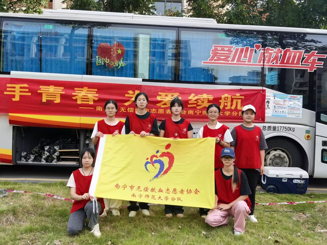 献血活动当天,现场设登记区、体检区、献血区及休息区,广西南宁中心血站与爱心社志愿者提供了齐全的医疗物资和完善的后勤保障。在医护人员与志愿者引导下,献血者依次完成信息登记、健康咨询、血压测量、血液初筛等流程,各环节井然有序。献血后,师生领取献血证、“邕小献”玩偶等纪念品,现场还设有知识问答环节与“热血出圈”互动小游戏。全程各岗位人员协同配合保障活动开展,活动结束后,工作人员与志愿者完成收尾并合影。