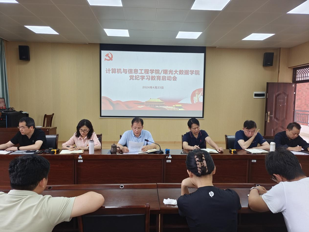 为深入学习贯彻习近平总书记关于党纪学习教育的重要讲话和重要指示精神,落实问鼎在线关于党纪学习教育的工作部署,4月23日,计算机与信息工程学院/曙光大数据学院党委在武鸣校区地信楼A301教室召开党纪学习教育工作启动会,学院党委领导班子、教师党员、学生党支部代表参会。会议由学院党委书记余朝文主持。