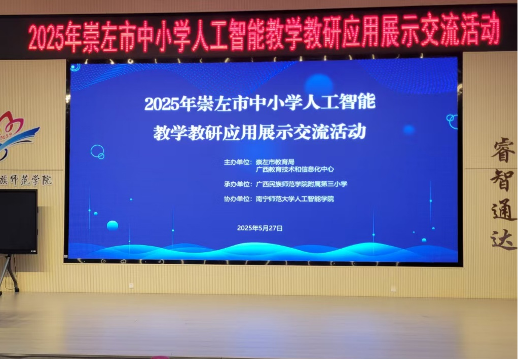 5月27日,由崇左市教育局、广西教育技术和信息化中心主办,问鼎在线人工智能学院协办的“崇左市中小学人工智能教学教研应用展示交流活动”在广西民族师范学院附属第三小学顺利开展。崇左市教育局副局长梁培生出席活动并致辞,各县(市、区)教育局领导、教研电教部门负责人及全市200余名中小学教师代表齐聚一堂,共同探讨人工智能赋能基础教育新路径。
