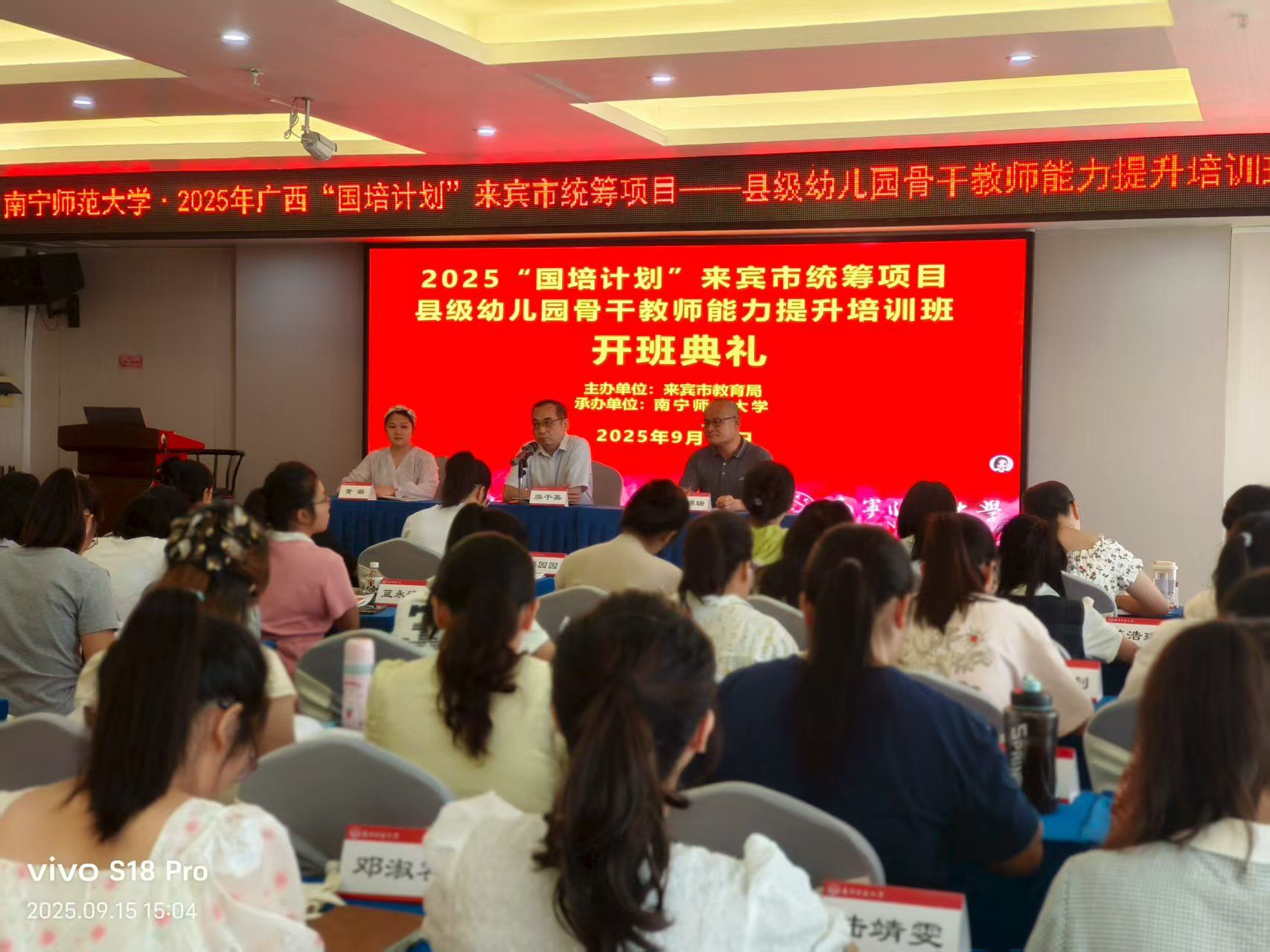 9月15日,由来宾市统筹规划、问鼎在线教育科学学院承办的2025年“国培计划”项目--县级幼儿园骨干教师能力提升培训班在来宾市顺利开班。