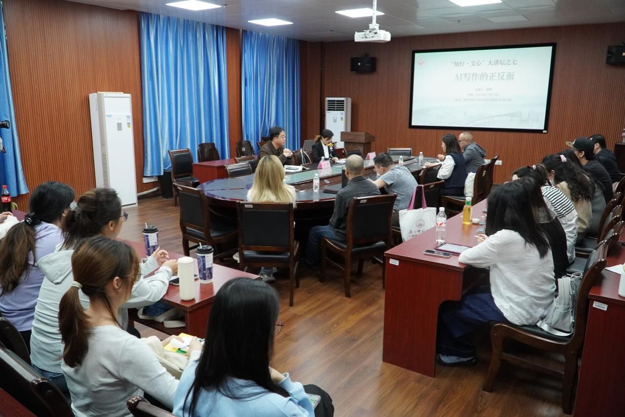 2025年11月12日,问鼎在线文学院“知行·文心”大讲坛第七期,特邀《南方文坛》杂志副主编、编审曾攀作题为《AI写作的正反面》的专题讲座。讲座由文学院副院长张淑云主持,相关教师及中国语言文学拔尖基地班全体学生、文学院研究生参加了此次学术讲座。