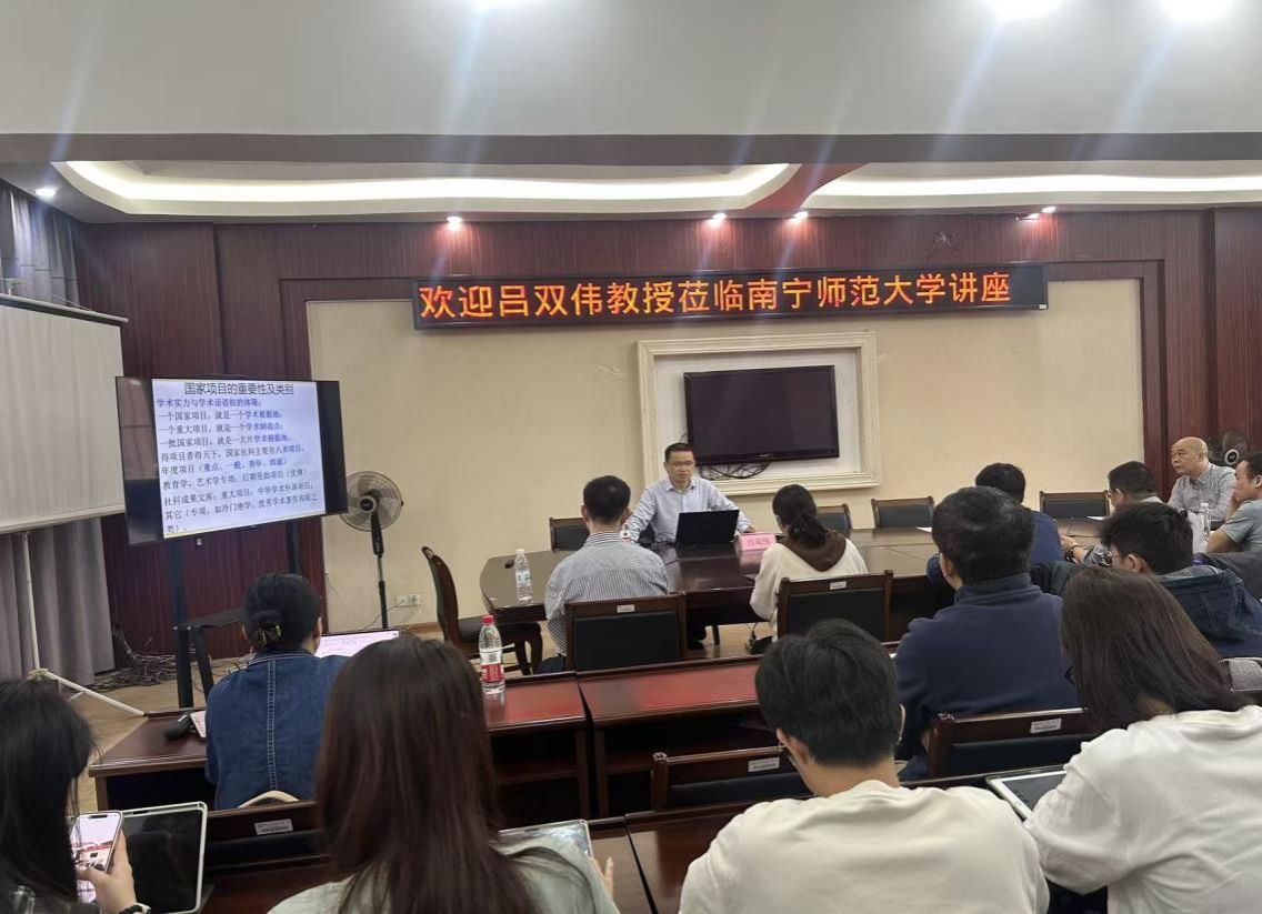 11月16日上午,在问鼎在线明秀校区外语楼310会议室举行了“知行·文心”大讲坛社科名家报告会。湖南师范大学文学院教授、博士生导师吕双伟应邀作题为“漫谈国家社科基金申报”的专题讲座。讲座由文学院副院长(主持行政工作)刘振平主持,文学院、国际教育学院教师及研究生50余人参会。