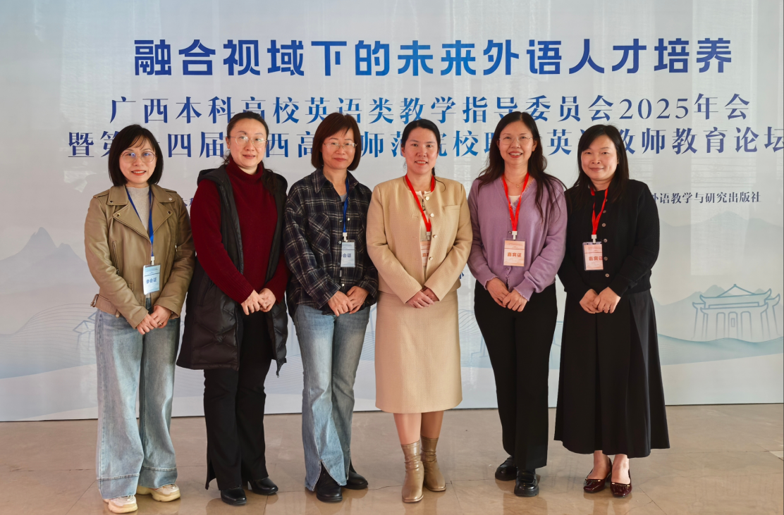 11月22-23日,外国语学院副院长高飞雁率邓芳娇、刘婷婷、夏莉等教师赴桂林参加广西本科高校英语类教学指导委员会2025年会暨第十四届广西高等师范院校职前英语教师教育论坛。首先,广西本科高校英语类专业教学指导委员会主任李晓致辞,对英语专业教学寄予殷切期望,接着会议围绕英语教育教学创新和实践、AI与外语教育融合、师范生培养等议题,邀请了区内外专家分享经验。