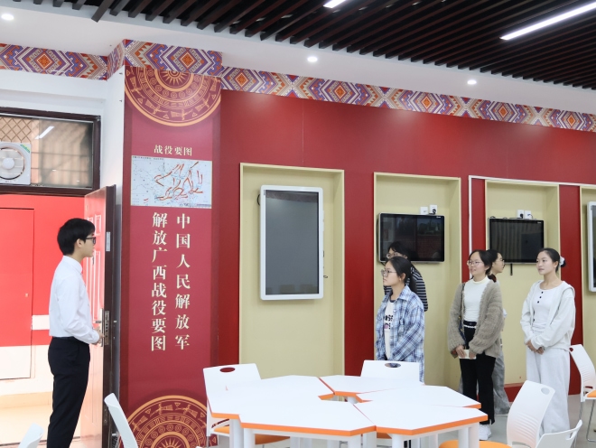 活动中,大家在主持人带领下参观学院各类场馆设施,马克思主义理论教育广场、党史育人画廊、科学社会主义发展史教育馆及广西新时代爱国主义教育虚拟体验中心、湘江战役虚拟仿真实验中心等,丰富实用的设施全方位展现着学院建设的扎实成果。自由参观环节中,嘉宾们兴致勃勃地自主体验探索,在VR等先进设备的互动中,马克思主义理论变得可感可触。最后,红色知识有奖问答将活动氛围推向高潮,多轮抢答互动里,大家在重温红色知识的过程中感悟峥嵘岁月,理想信念愈发坚定。