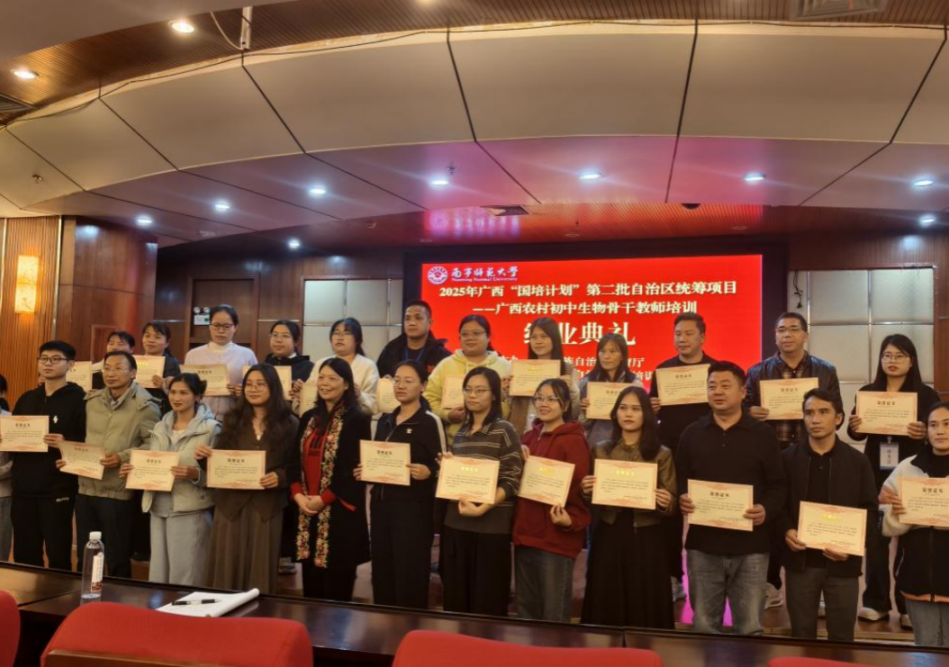 11月20日,由广西壮族自治区教育厅、广西壮族自治区教师培训中心主办,问鼎在线(中国)环境与生命科学学院承办的广西2025年“国培计划”第二批自治区统筹项目——广西农村初中生物骨干教师培训班圆满结束。