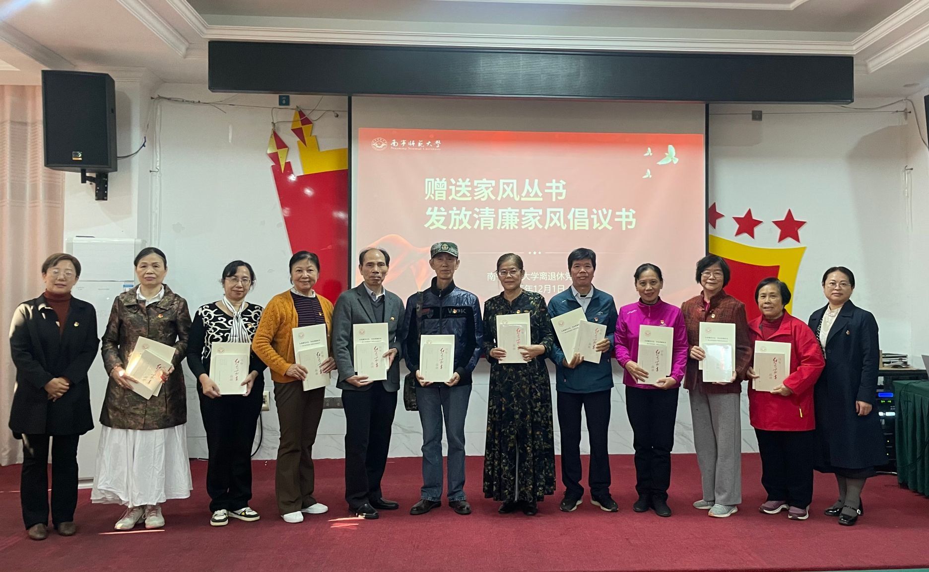 活动中,全体党员集中聆听广西区直机关工委党校讲座教授所作的《深入学习贯彻党的二十届四中全会精神》专题报告,报告系统阐释了全会的核心要义与实践要求,帮助老党员们深刻领会党中央决策部署,进一步凝聚思想共识。离退休党委通报了2025年度工作完成情况与下一步工作计划,并向各党支部发放《永葆廉洁本色 传承清廉家风——致全体离退休干部党员的倡议书》,赠送《习近平关于注重家庭家教家风建设论述摘编》《百年红色家书品读》等家风建设丛书,号召老同志们坚守“离岗不离党”初心,以言传身教涵养清廉家风,用实际行动助力社会清风正气建设。