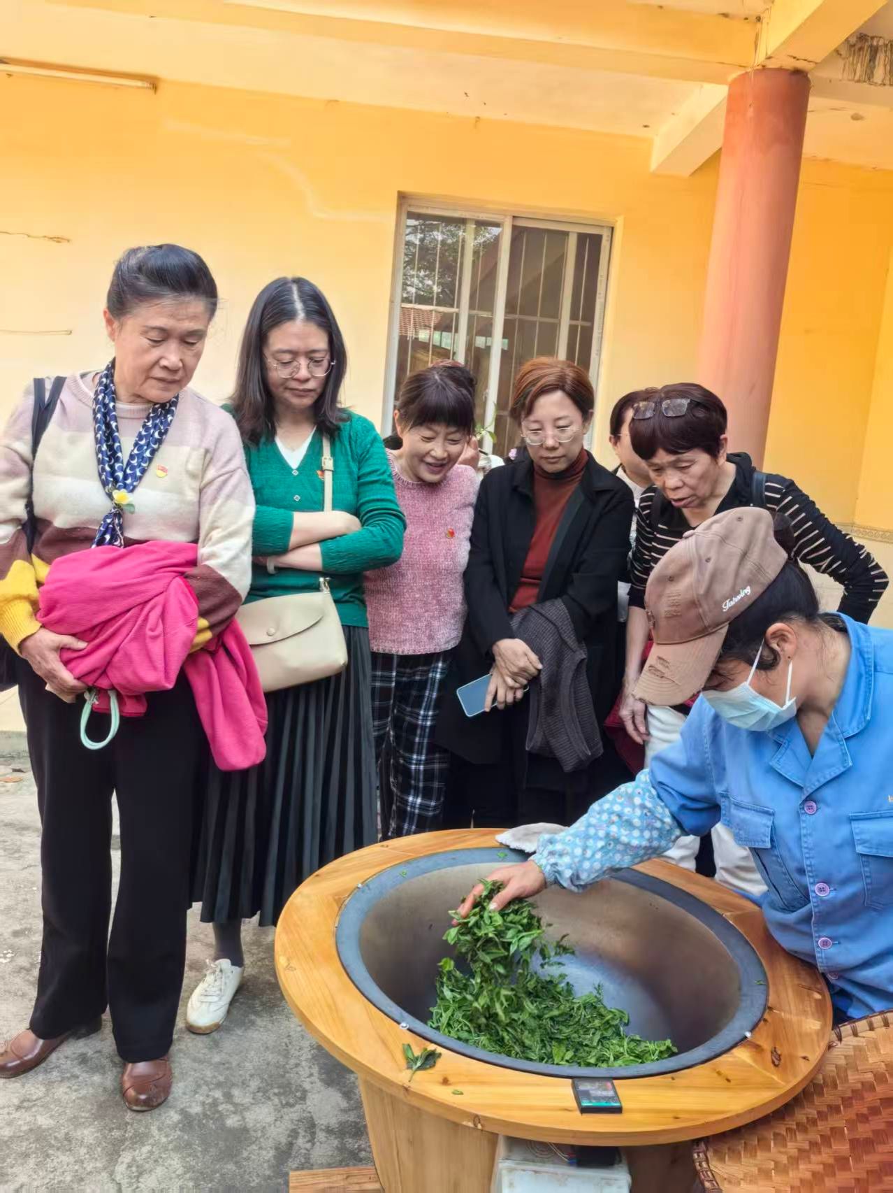 期间,党员们踏上红色步道,沿着党的一大至党的十九大的历史脉络重温党的奋斗征程,感悟本土革命先辈的英勇事迹;走进华纳先锋党建馆与纳米钙数字科技展厅,亲身体验“党建+科技”的创新实践,感受党建引领下企业发展的蓬勃活力;在生态茶园参与采茶、炒茶劳动实践,在指尖与茶青的触碰中体悟“一分耕耘一分收获”的朴素哲理,于茶香氤氲间淬炼清正廉洁之心;老党员们结伴漫步于暖阳清风中,在革命足迹与科技场景中驻足交流,不时合影留念,现场洋溢着温馨和谐的氛围。大家纷纷表示,此次活动既是一次深刻的思想“补钙”,更是一次温暖的精神“养心”。作为离退休党员干部,将继续发挥政治优势与经验优势,传承红色基因,严守纪律规矩,以清廉本色践行初心使命,为社会发展贡献银发力量。