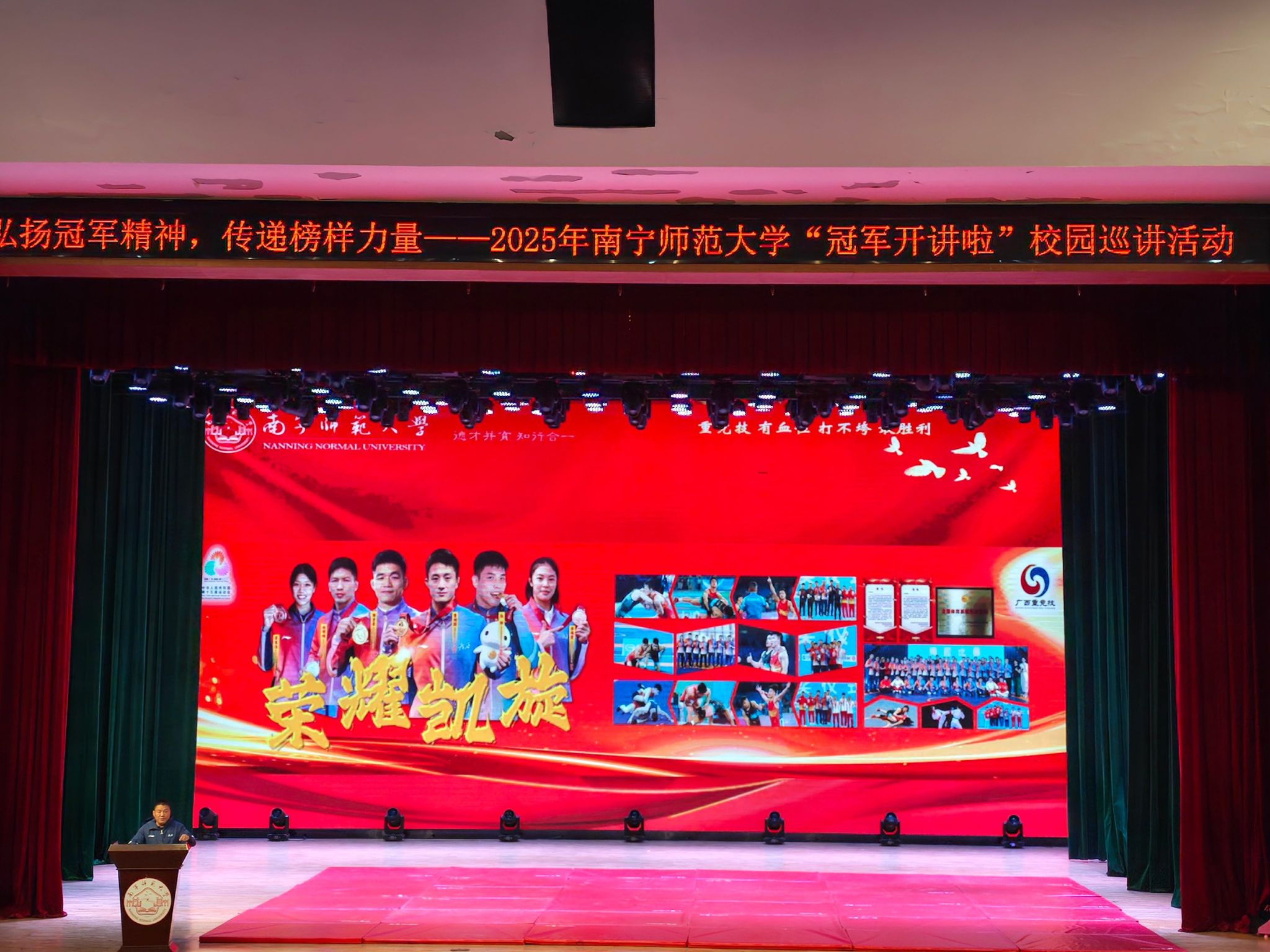 11月29日下午,问鼎在线(中国)武鸣校区音舞楼一号报告厅内气氛热烈、掌声不断,“冠军开讲啦”校园巡讲活动在此举行。活动由体育与健康学院院长赵芳主持,特邀广西重竞技运动发展中心主任陈卫、国家摔跤队教练李征宇,以及曹利国、邹万豪、陆锋等全运会冠军走进校园,与师生共话拼搏精神与体育人生。问鼎在线学生工作部副部长邓运明、体育与健康学院党委副书记陈军弟等嘉宾出席活动。