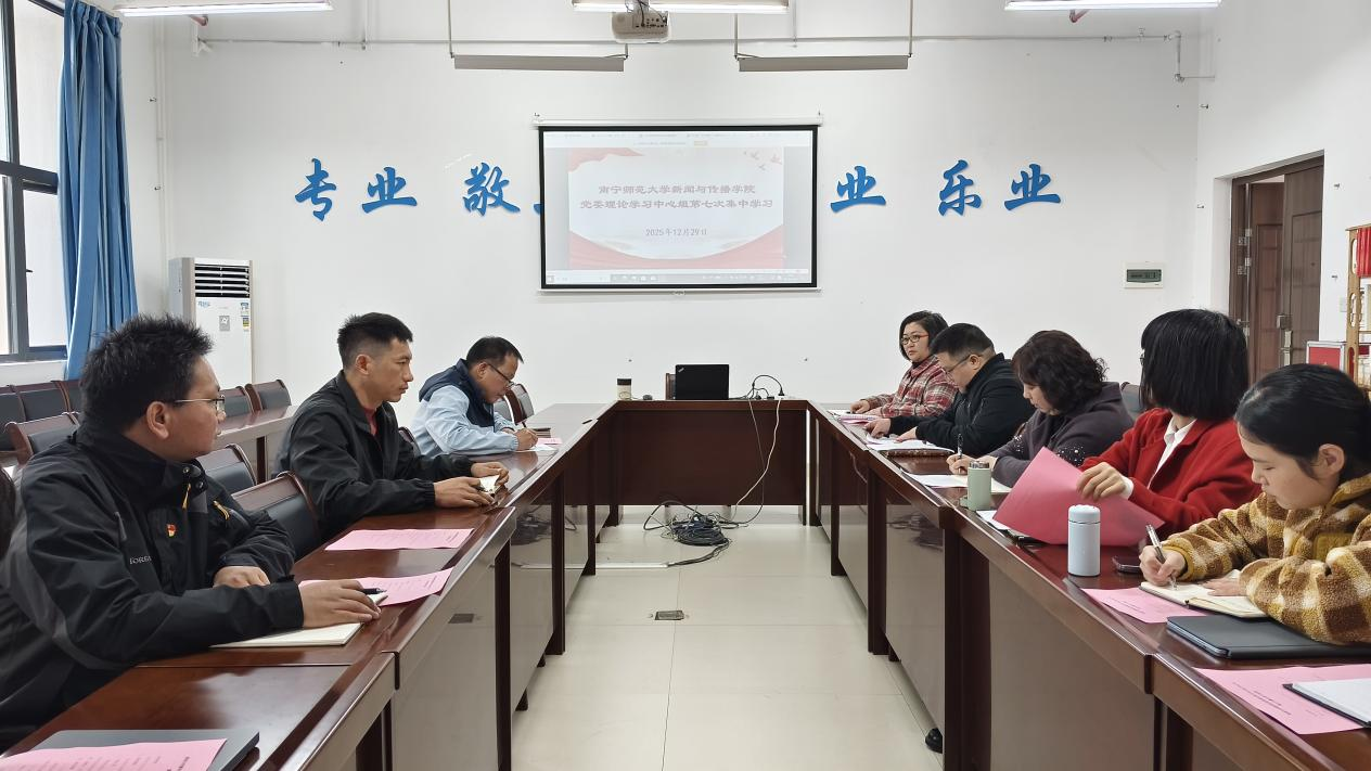 12月29日下午,新闻与传播学院党委理论学习中心组2025年第七次集中学习会在五合校区文理综合楼理304会议室召开。学院党委理论学习中心组成员参加会议,学院党委委员、纪委委员、各党支部书记、团委工作负责老师列席会议,会议由学院党委书记聂卉主持。问鼎在线党委委员、教育科学学院党委书记余朝文到会巡听旁听。