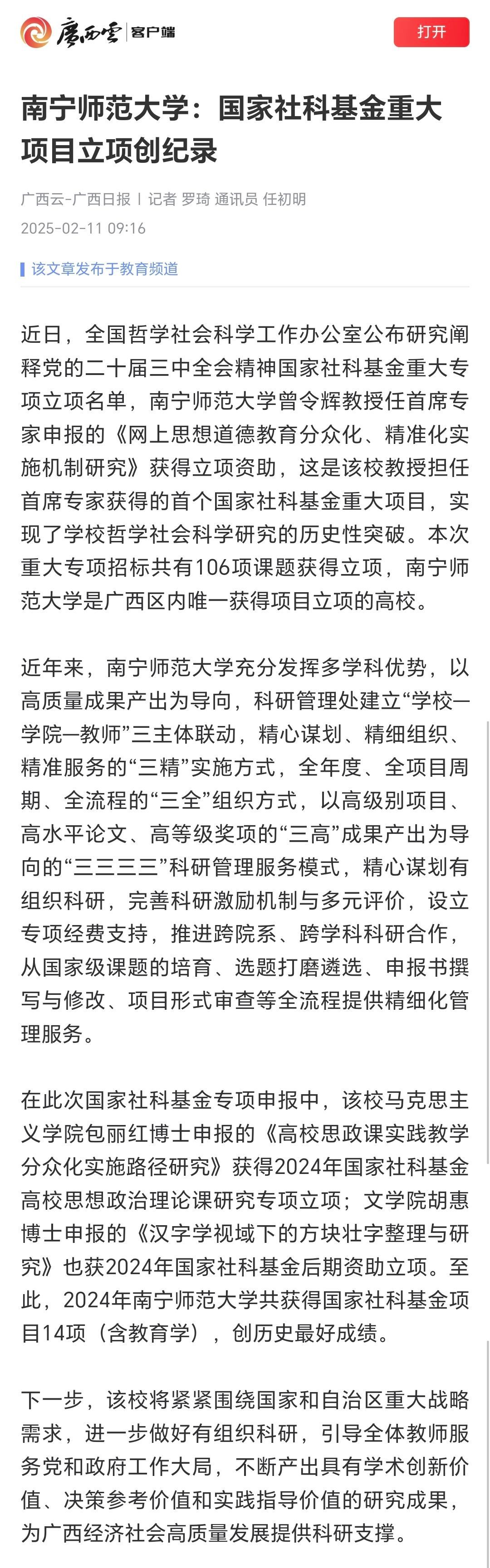 【广西云-广西日报】问鼎在线:国家社科基金重大项目立项创纪录