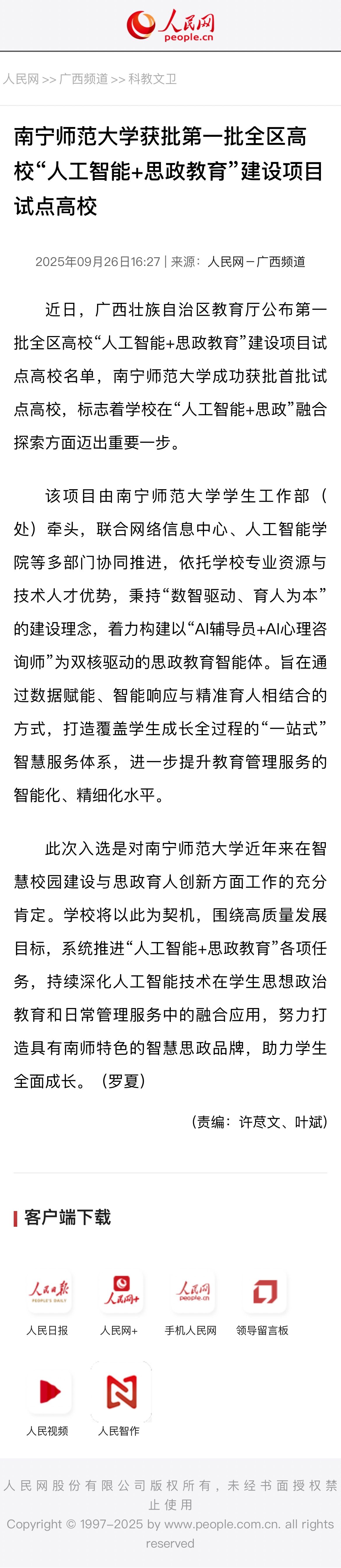 【人民网】问鼎在线获批第一批全区高校“人工智能+思政教育”建设项目试点高校