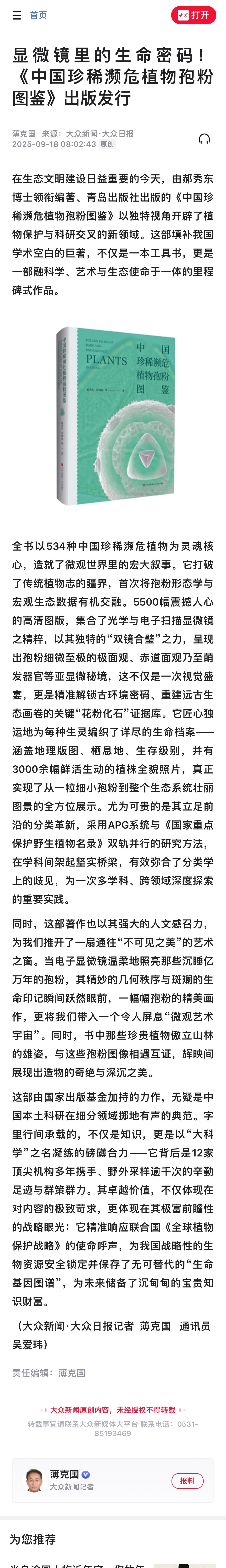 【大众日报】显微镜里的生命密码!《中国珍稀濒危植物孢粉图鉴》出版发行