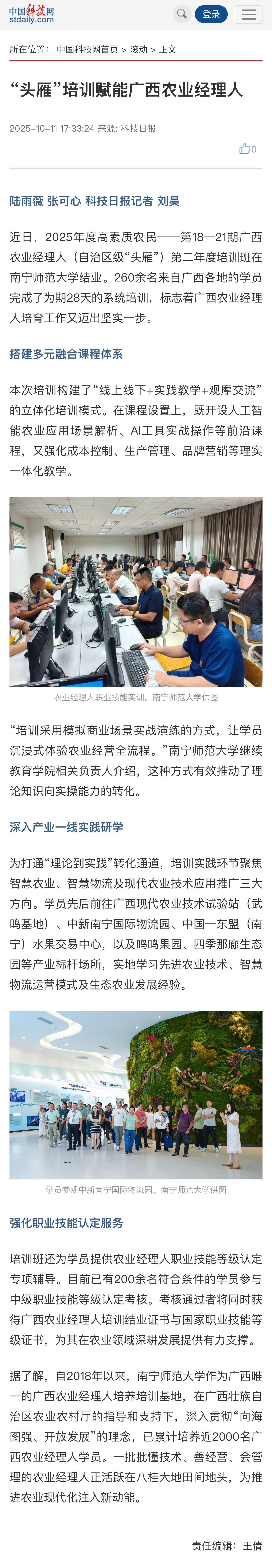 【中国科技网】“头雁”培训赋能广西农业经理人