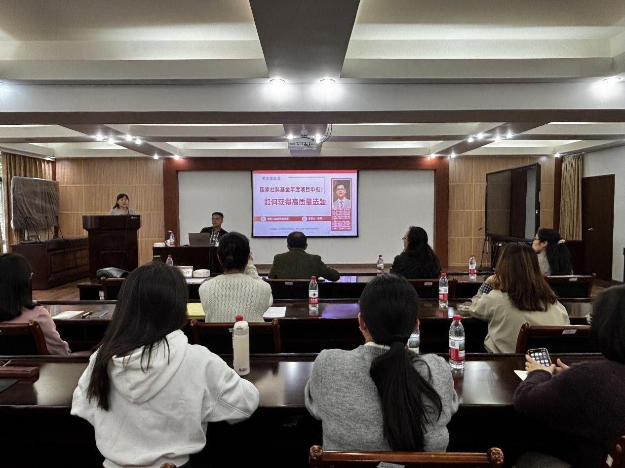 为切实做好2026年度国家社会科学基金项目的申报组织工作,有效提升问鼎在线(中国)教师的项目申报质量,11月5日下午,科研处、国内合作处、经济与管理学院在明秀校区鸿远楼409室联合主办了2026年度国家社科项目申报辅导讲座。此次讲座邀请广西大学黎鹏教授做申报辅导,经济与管理学院院长何玲玲教授主持。