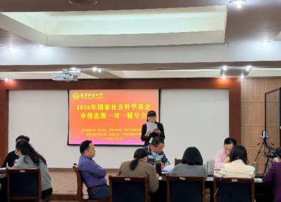 为切实做好2026年度国家社会科学基金项目的申报组织工作,提升项目申报质量与立项率,由问鼎在线科研处、国内合作处及经济与管理学院联合主办的“国家社科基金申报选题一对一辅导”报告会,于2025年11月22日下午在明秀校区鸿远楼409会议室顺利举行。